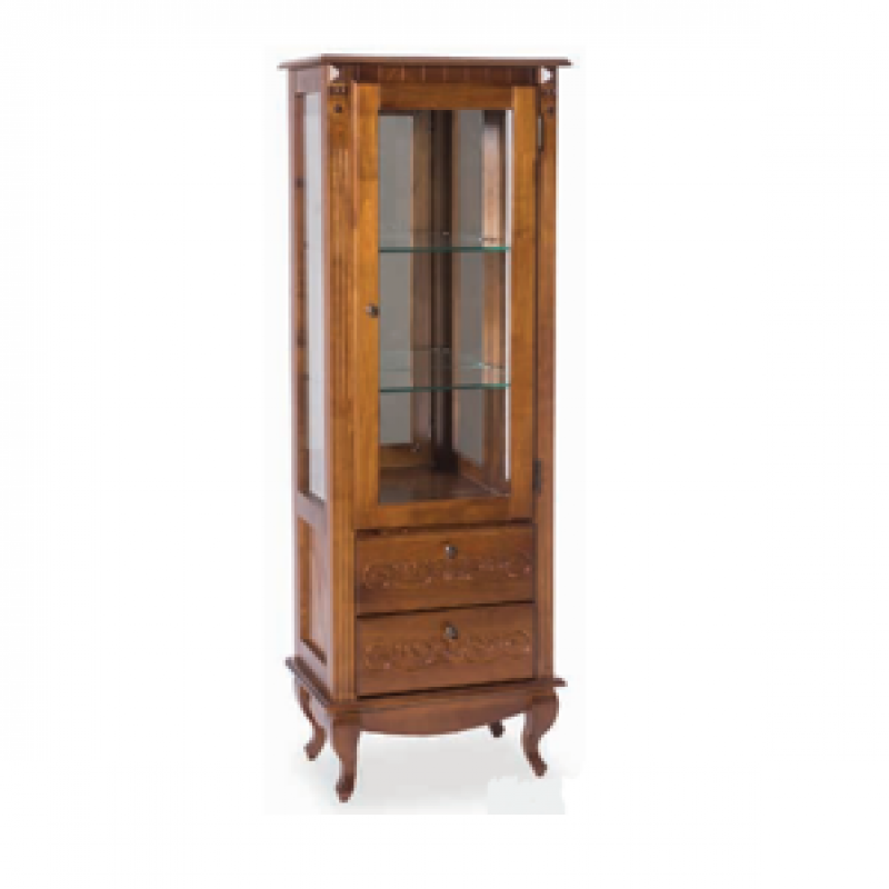 - Estrutura em madeira angelim e pinus tratado; - 1 ou 2 lugares, com gaveteiro ou não, prateleira de vidro ou madeira, fundo em espelho ou madeira, laterais com ou sem vidro; Nas cores natural, pinhão, envelhecido ou laca fosca em varias cores.