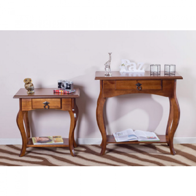 - Estrutura em madeira angelim e pinus tratados, diversidade de cores podendo optar também por natural, envelhecido ou branco; - 1 gaveta. Tamanhos: LxPxA - 1mx40cmx91cm - 80cmx40cmx75cm - 60cmx40cmx58cm