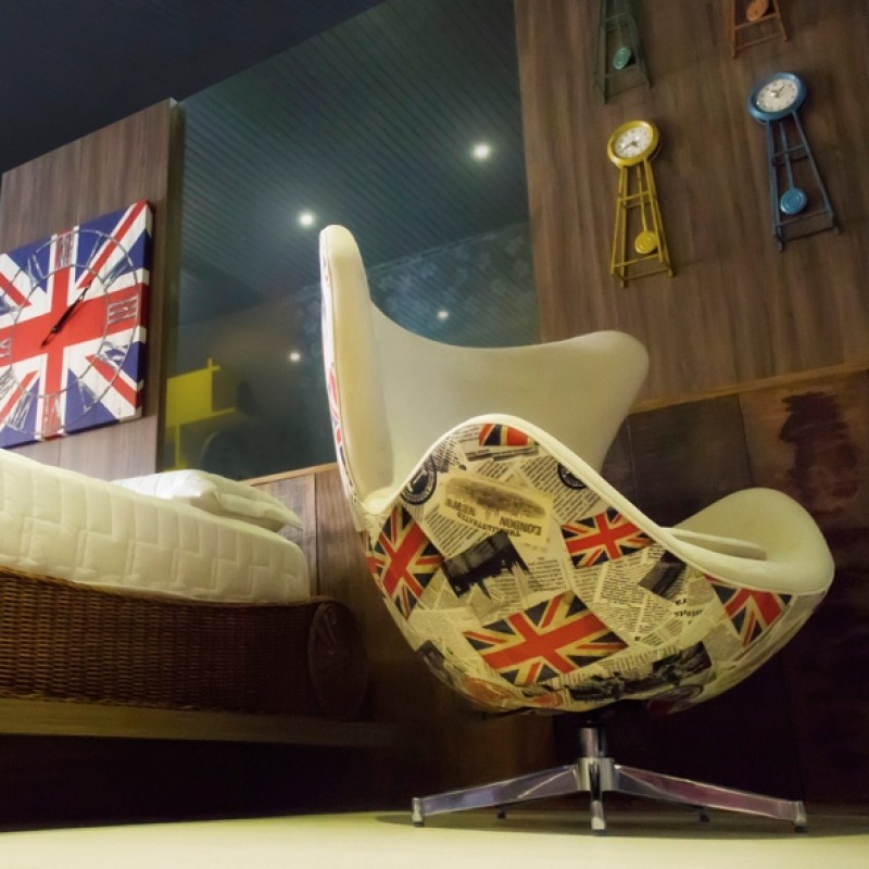 - Estrutura em fibra; - Espuma de 3cm, densidade 32; - Base em alumínio com relax; *Opcional 1 puff. Poltrona desenvolvida por Arne Jacobsen em 1958.