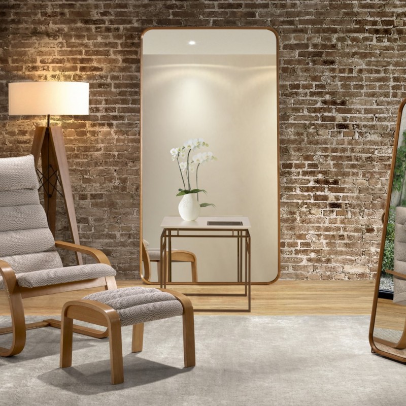 - Estrutura em madeira laminada; - Espuma gomada 6cm, d26.