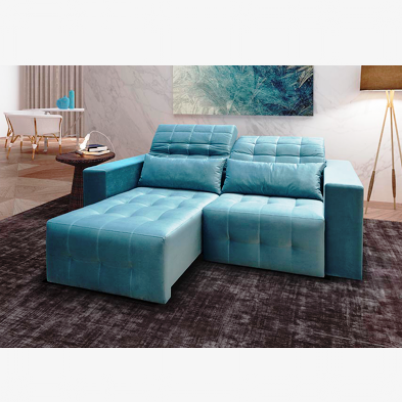 -Enconsto de cabeça reclinável com 5 estágios, percinta elástica italiana e espuma D-18 soft revestido com fibra manta 150 gr. -Assento retrátil com corrediça metálica, tiras de molas pocket, percinta elástica italiana, espuma D-28, espuma mnata D-18 soft e fibra manta 150 gr; -Estrutura em madeira tratada de eucalipto com parafusos de fixação e porca garra que facilitam a montagem e desmontagem das peças. Disponível na opção modulado. *Garantia de 5 anos na estrutura.