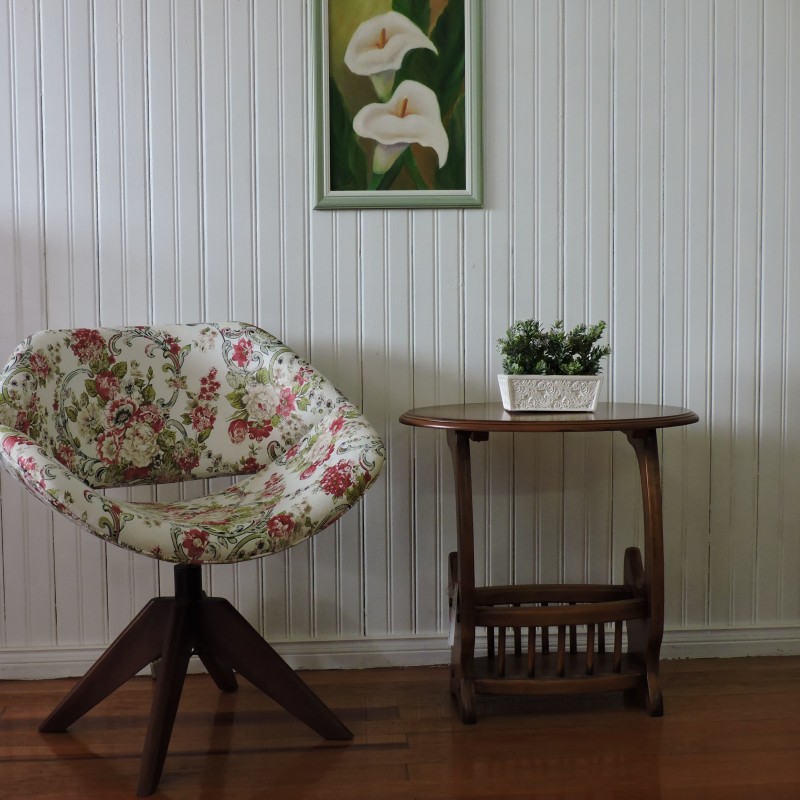 - Estrutura laminada; - Base alumínio ou madeira (palito) giratória; - Espuma 4cm, densidade 28.