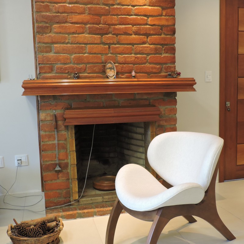 - Estrutura em madeira laminada; - Espuma 6cm, densidade 28; - Base fixa em madeira (eucalipto).