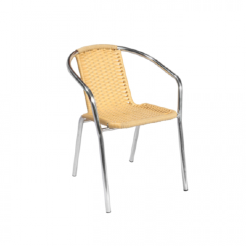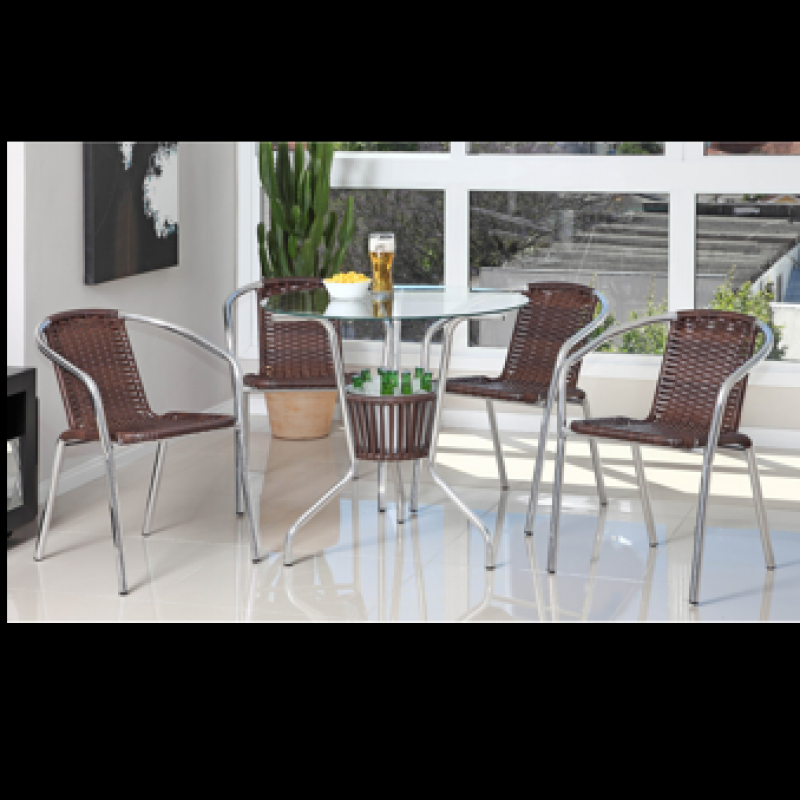 - Cadeiras com estrutura em alumínio, junco trançado importado; - Mesa com estrutura em alumínio, vidro 6mm; *Opcional baldinho.