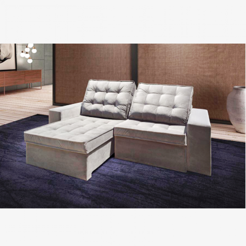 -Encosto de cabeça reclinável com 4 estágios, percinta elástica italiana, fibra siliconizada e revestido com fibra manta 150 gr. -Assento retrátil com corrediça metálica, tiras de molas pocket, percinta elástica italiana, pillow espuma D-28 e revestido com fibra manta 150 gr. -Estrutura em madeira tratada de eucalipto com parafusos de fixação e porca garra que facilitam a montagem e desmontagem das peças. Disponível na opção modulado. *Garantia de 5 anos na estrutura.
