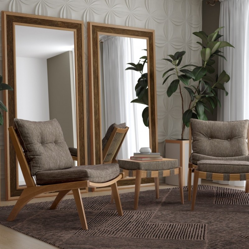 - Estrutura em madeira eucalipto; - Espuma 8cm, d28.