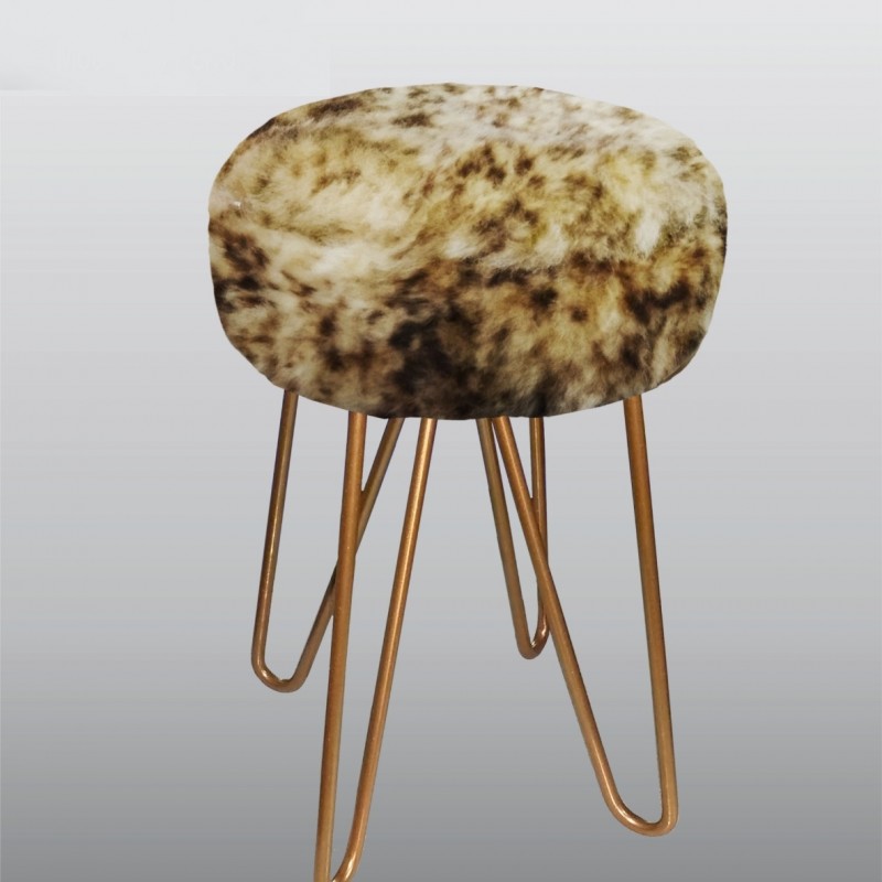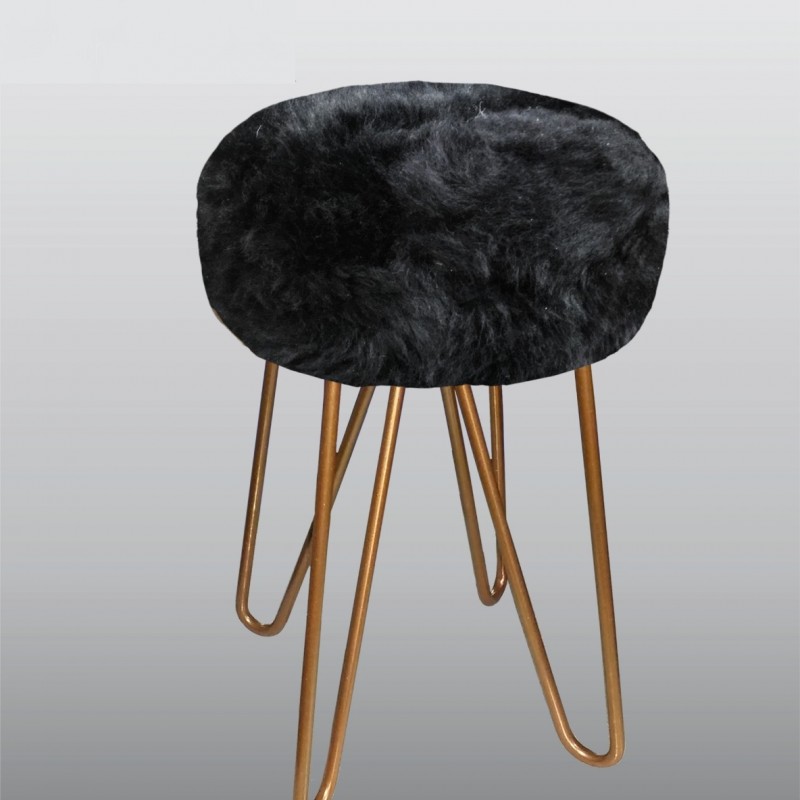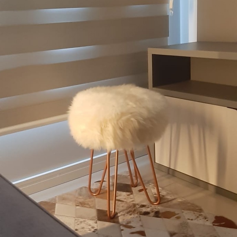 - Base em aço escovado com pintura epoxi; - Espuma 4cm, d28; - Revestimento em pelego de ovelha, pele de boi, em couro ou tecidos e corinos. * Tripé ou quadripé.