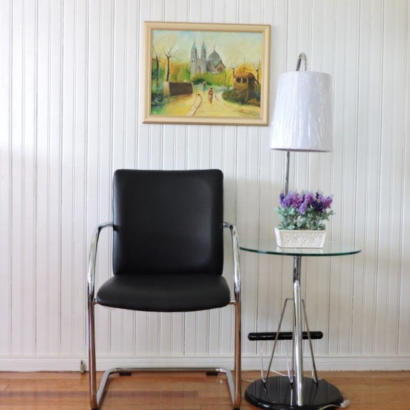 - Base tubular, madeira acento e encosto madeira laminada; - Espuma 4cm, densidade 28;