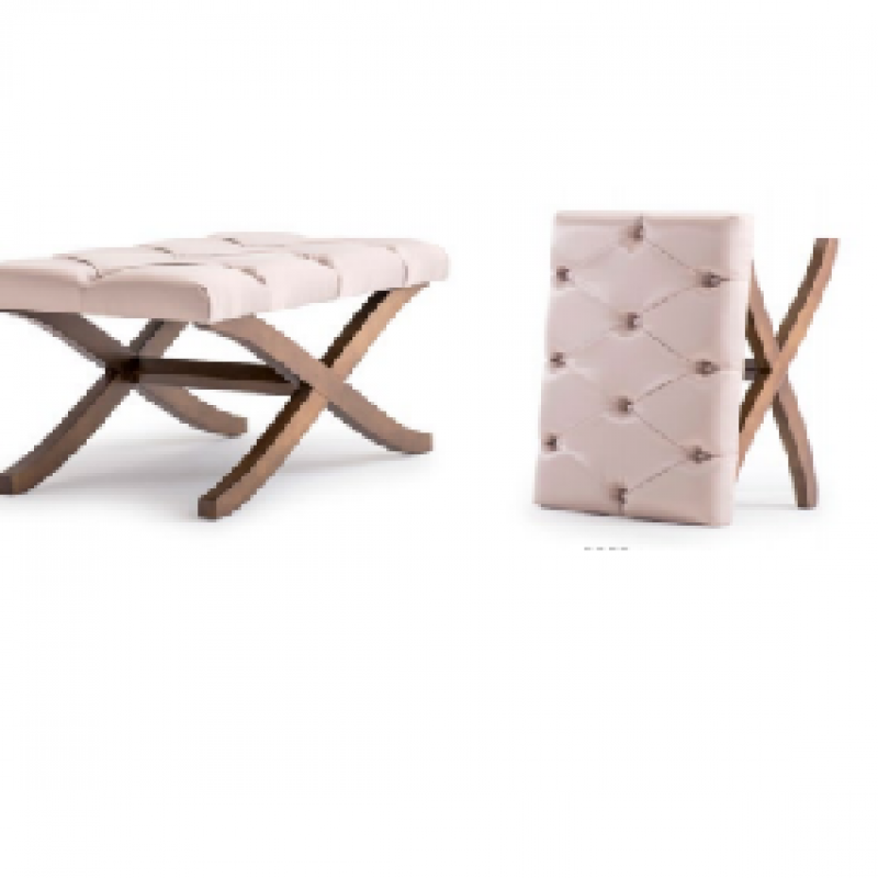 - Base em madeira eucalipto (variedade de cores); - Espuma 6cm, densidade 28; - Revestimento liso ou capitonê. * Temos também no tamanho 60x40x40