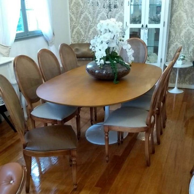 - Estrutura em madeira tauari; - Encosto trabalhado (tela); - Espuma 6cm, densidade 28.