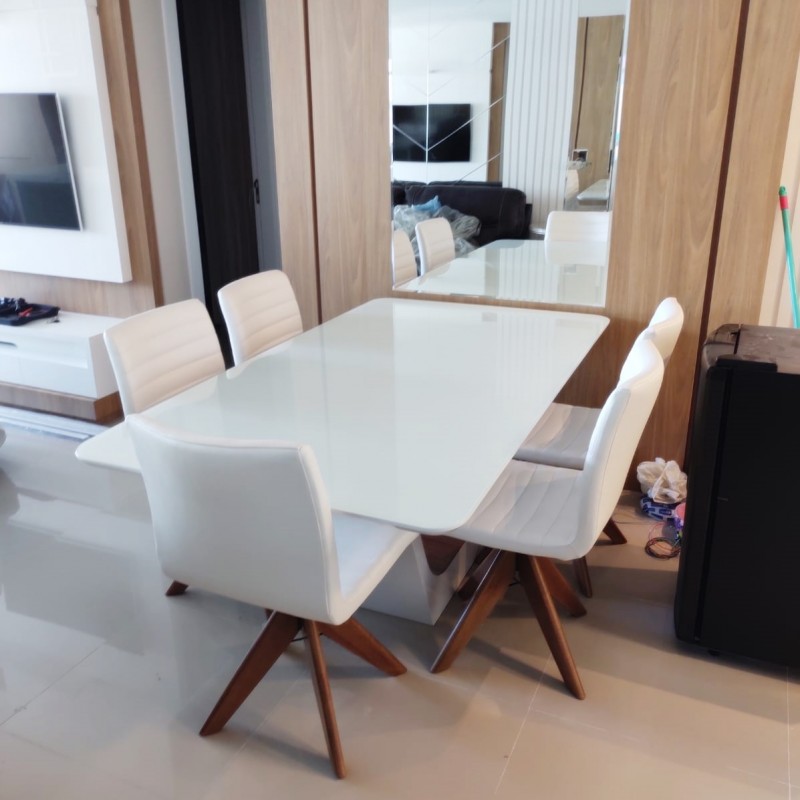 - Estrutura em madeira laminada; - Revestimento liso, gomada ou capitonê; - Base em alumínio giratória, opcional: rodinhas e pistão; - Base em madeira (palito) fixa ou giratória.