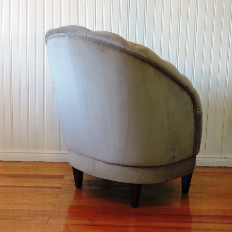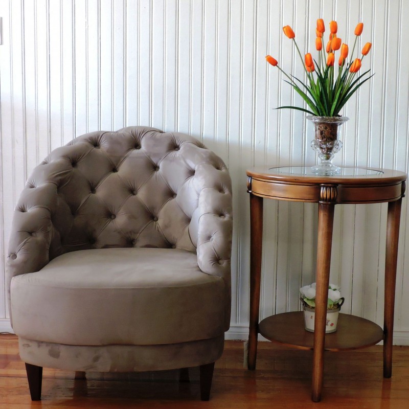 - Estrutura em madeira (eucalipto); - Espuma 6cm, densidade 28 /encosto em capitonê; - Base madeira eucalipto.